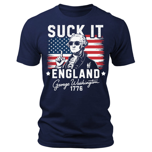 Suck It England Shirt 4th Of July Funny Patriotic George Washington Men's 1776 Short Sleeve Graphic Tees