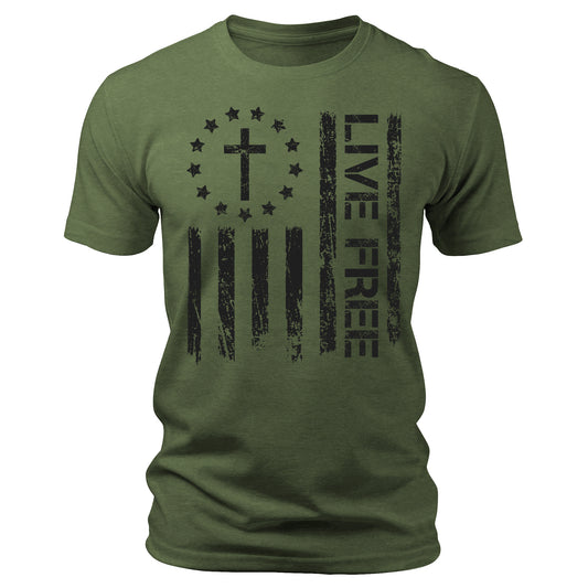 Live Free Christian Conservative Quote T-Shirt Patriotic Short Sleeve Crewneck Graphic Tees