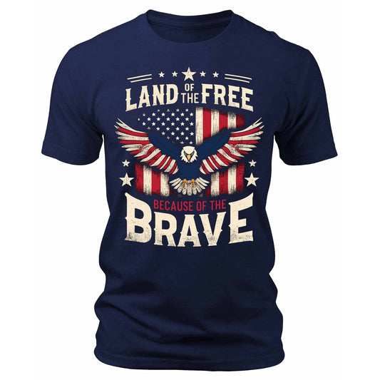 Men's Land Of The Free Because Of The Brave Eagle USA Flag T-Shirts Patriotic Short Sleeve Crewneck Graphic Tees