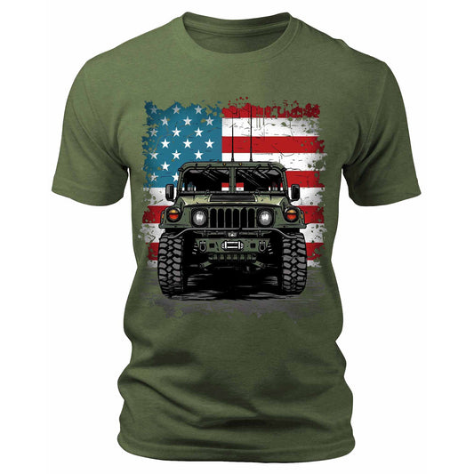 Men's Trendy Military Truck USA Flag T-Shirts Patriotic Short Sleeve Crewneck Graphic Tees