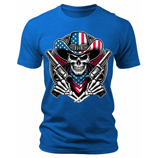 Men's Patriotic Skeleton Cowboy T-Shirts Short Sleeve Crewneck Graphic Tees