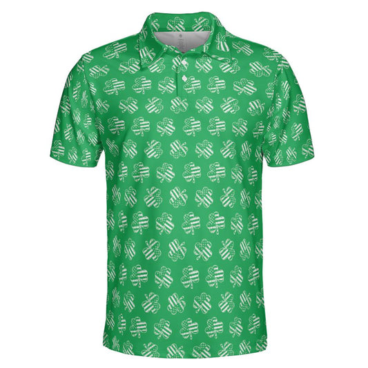 Patriotic Shamrock Flag St Patricks Day Polo Moisture Wicking Short Sleeve Green Golf Shirt for Men