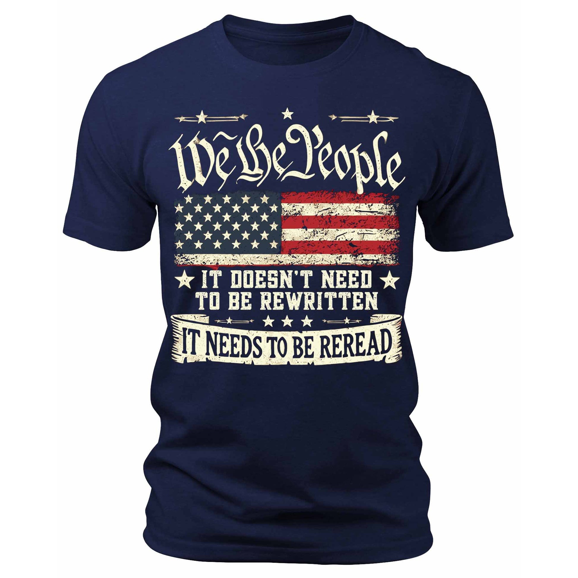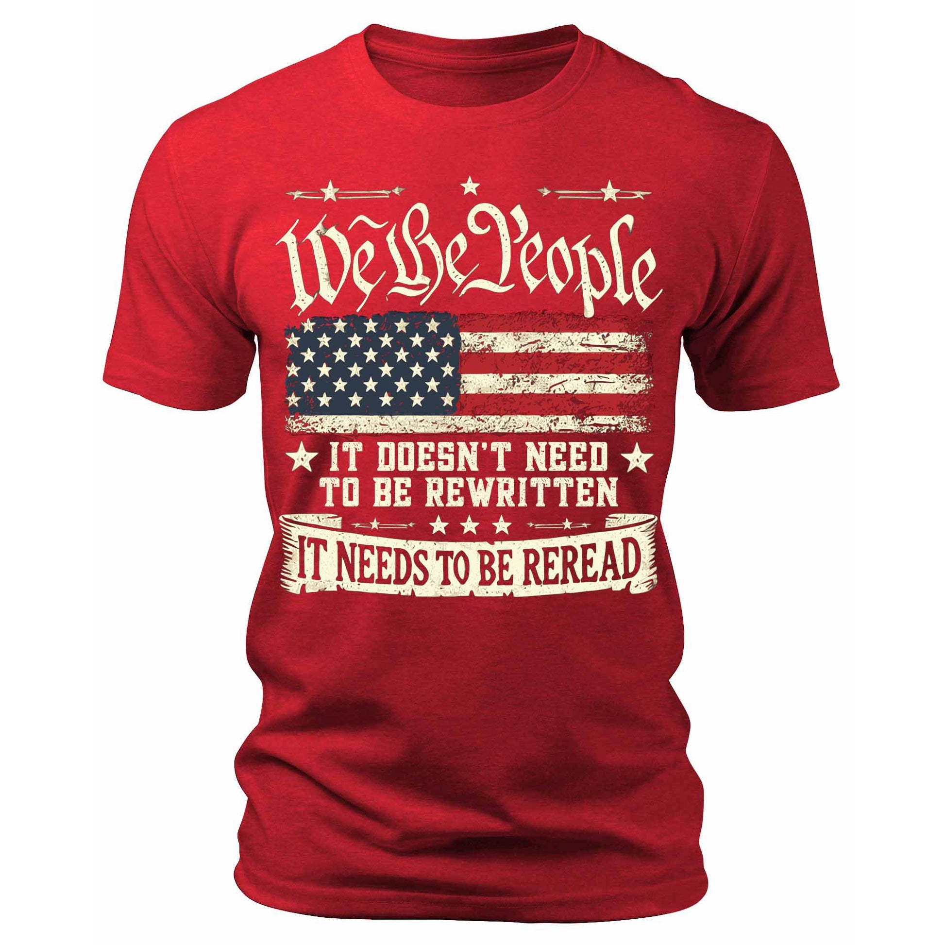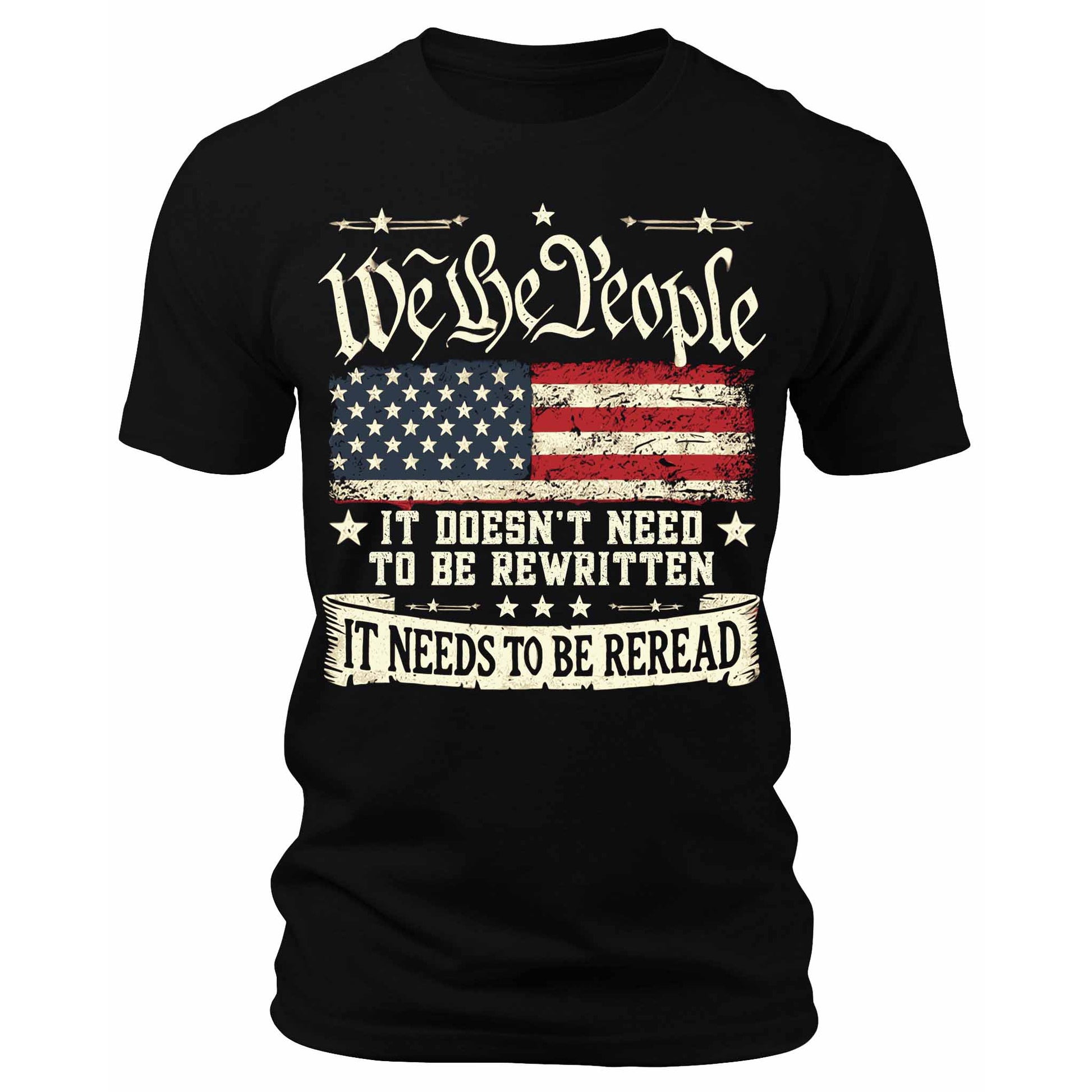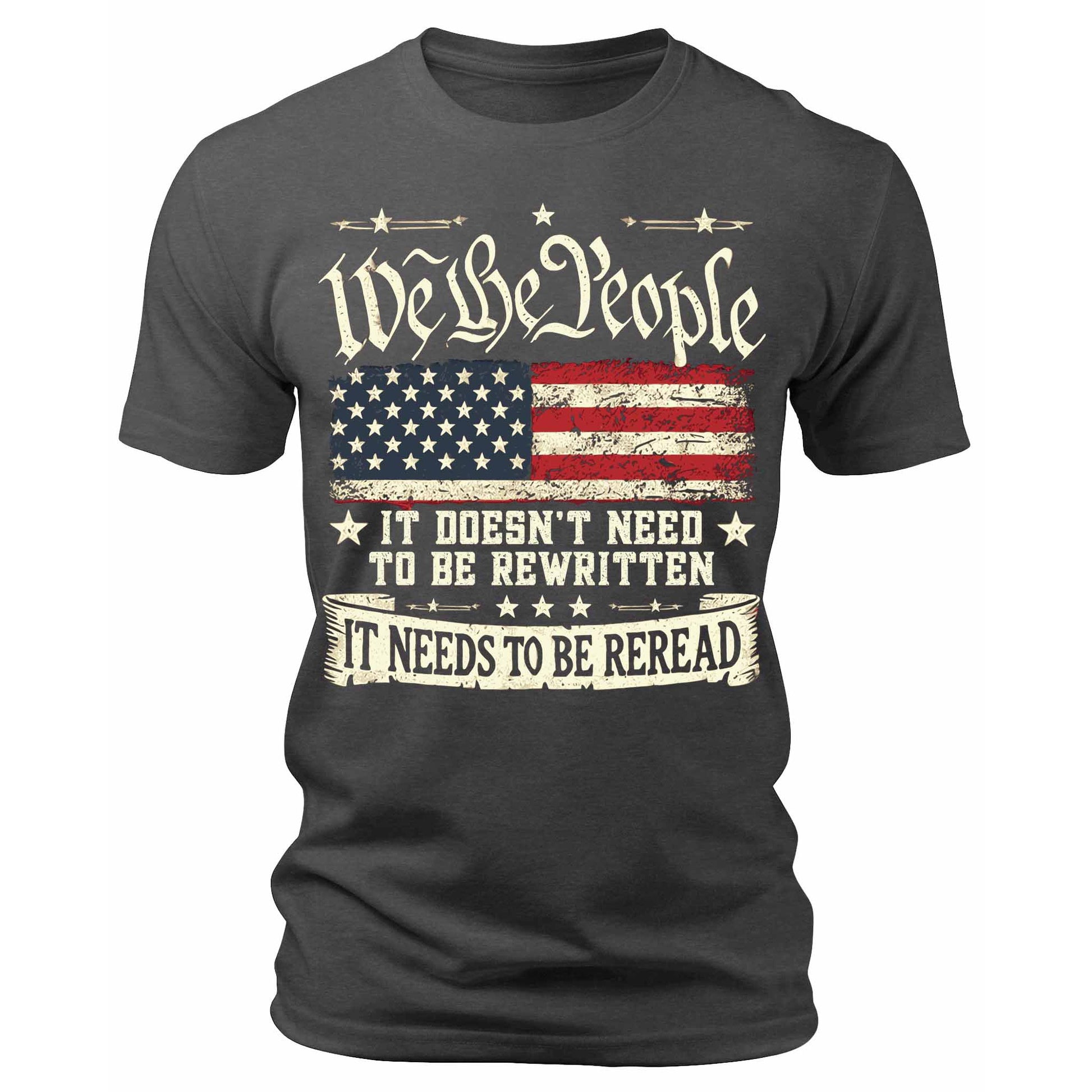 Men's We The People Needs To Be Reread Declaration of Independence 1776 T-Shirts Patriotic Short Sleeve Crewneck Graphic Tees